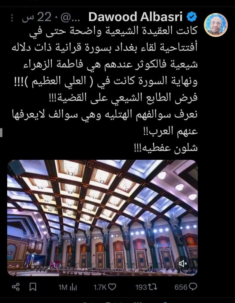 مكسيم العراقي اليوم 19 من الحرب المغدسة 1. تجارة الكرامة بعد تجارة الحسين والمغاومة والاسلام الموهومة..ردم ثروة العراقيين لإنقاذ كراسي الرهبرية 2. سقوط منظر الفسطاطين.. اغتيال لاريجاني ووحيدي بعده بيوم وانكشاف الهيكل المنخور للموساد 3. سفارة امريكا بغداد في مرمى المسيرات وصواريخ الرهبر وفروخه..ردم الدبلوماسية ونخر السيادة بـ التغليس 4. سايكوباثية الولي الفقيه.. وسيكولوجية السفاهة…