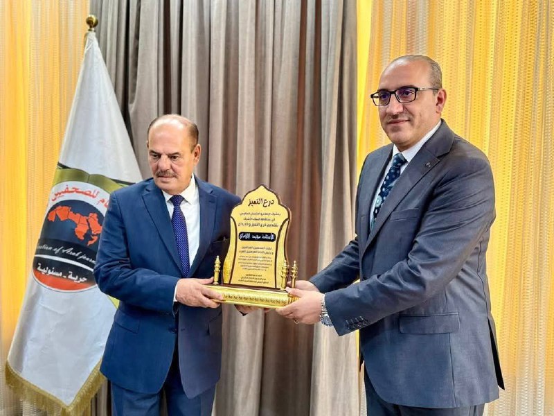 وكان في استقبال الوفد نقيب الصحفيين العراقيين ورئيس اتحاد الصحفيين العرب الأستاذ مؤيد اللامي، حيث بحث الجانبان سبل تعزيز التعاون المشترك ودعم الأسرة الصحفية في النجف الأشرف.