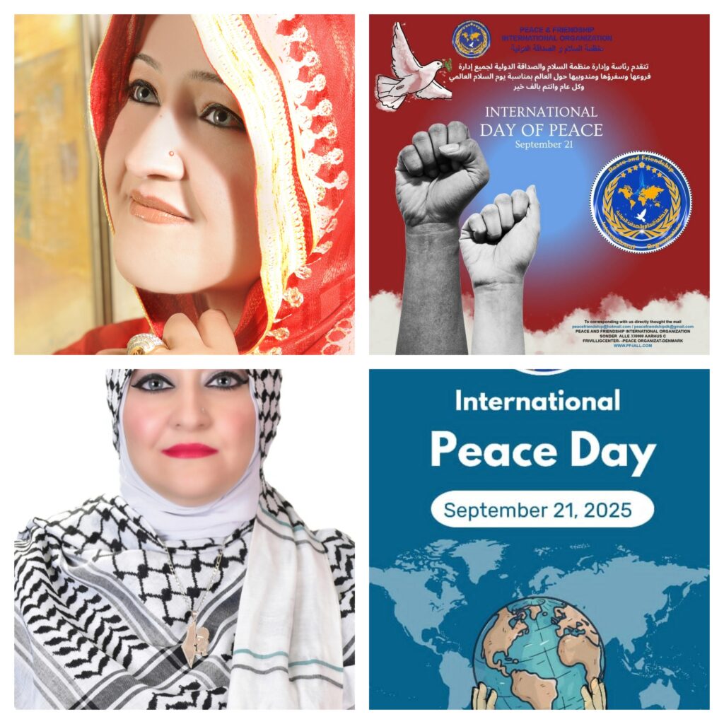 في ذكرى اليوم العالميّ للسّلام الموافق لـ 21 أيلول من كلّ عام: يصادف هذا اليوم الذّكرى السّنويّة لاحتفاء العالم بهذه الذّكرى النّبيلة المشرعة على الذّاكرة والاحتفاء بها من تاريخ 21 أيلول 1982 إبّان تصويت الجمعيّة العامّة على هذا القرار(8282/55) بالإجماع القاضي بتخصيصه يوماً عالميّاً للسّلام؛ ليكون هذا اليوم هو يوم عالميّ للامتناع عن العنف ووقف إطلاق النّار، والتزام الشّعوب بوقف الأعمال العدائيّة، ونشر الوعي لدى الجماهير بالمسائل المتّصلة بالسّلام، وتشجيعها على إقامة فعاليّات لتمجيد أهميّة السّلام بطرق مختلفة.