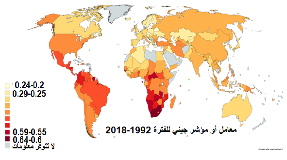 وكلما اقترب الرقم من الواحد وابتعد عن الصفر اشر ذلك الى خلل خطير في توزيع الثروة داخل دولة ما.